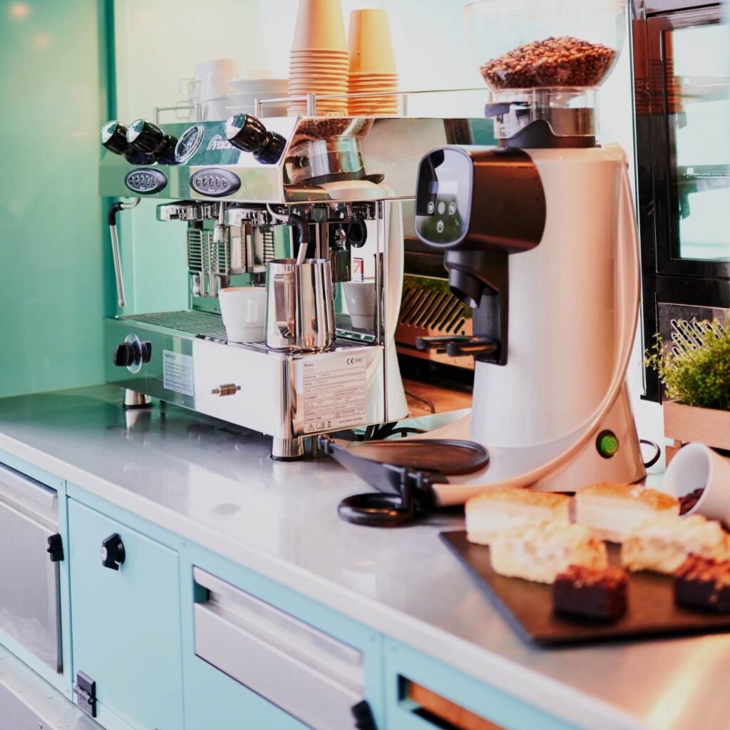 Unsere mobile Kaffeebar – komplett ausgestattet und ein echter Publikumsmagnet.